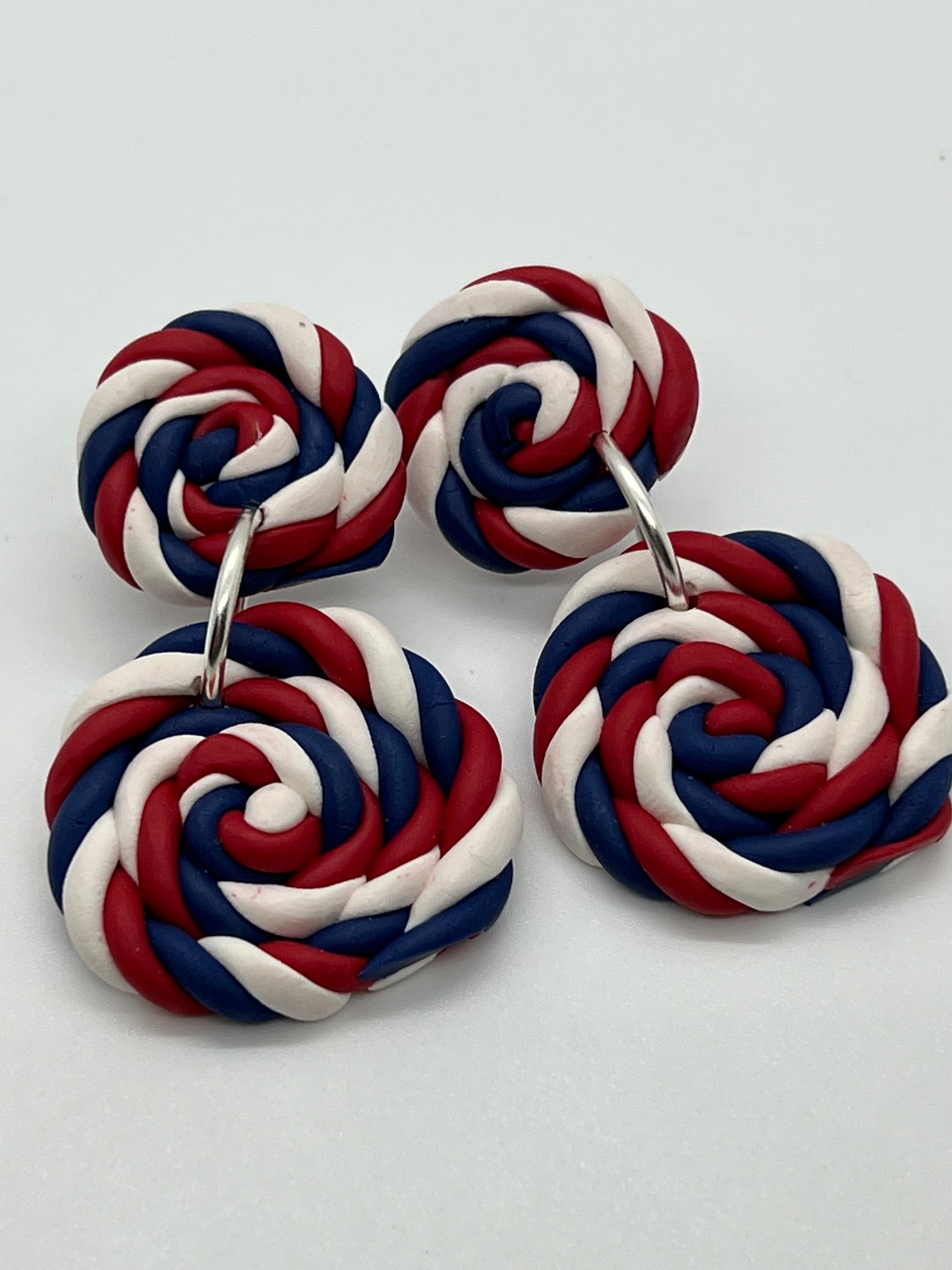 Rope and more rope. These red, white and blue polymer rope earrings are very classic. You will love these, trust me! These have an approx drop of 2" from post.