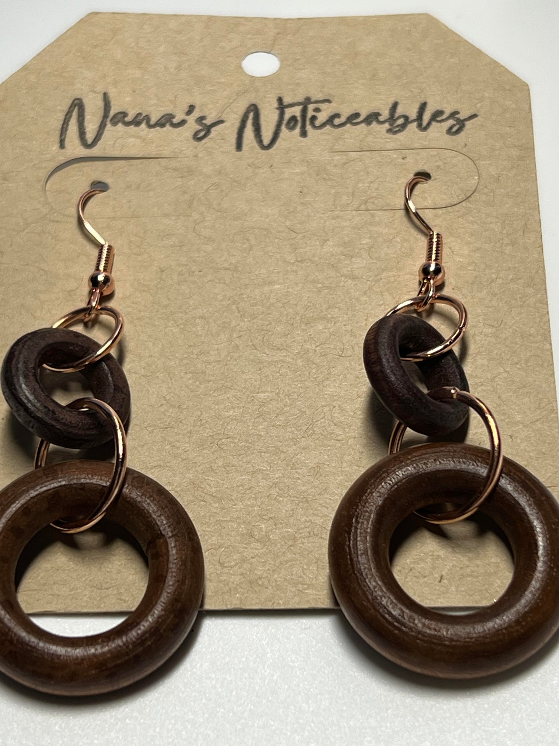 Wood stained 2 circle drop. Approx. drop is 2-1/2".